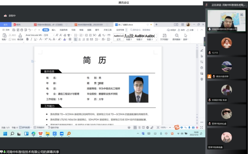 为提高学校毕业生就业竞争力,5月12日晚,BEAT365官网特邀河南中科智信信息技术有限公司人力资源部经理张由强作“求职技巧与方法”线上专题培训。各二级学院毕业生参加此次培训。