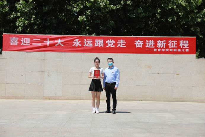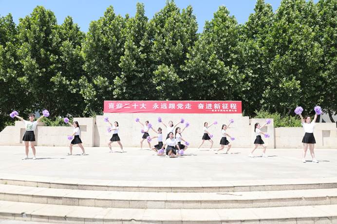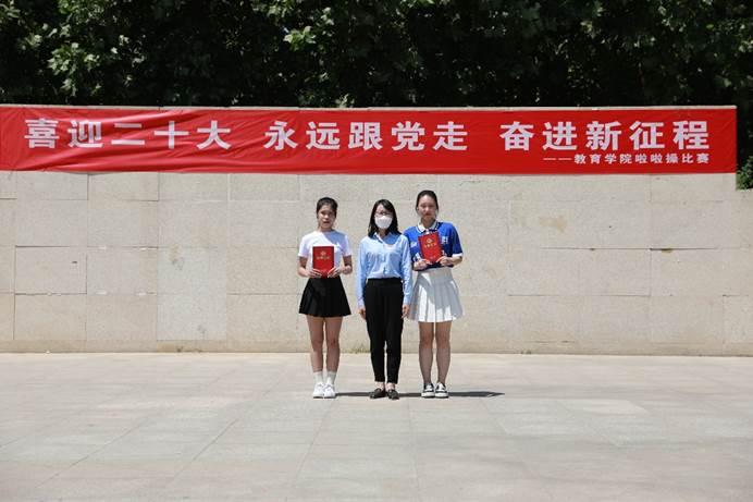 为激励广大青年学生积极参加校园文化活动,营造健康文明的校园文化氛围,弘扬时代精神,激发青春活力,教育学院开展了喜迎二十大、永远跟党走、奋进新征程啦啦操比赛。经过激烈的初赛、复赛选拔后,共有六支队伍脱颖而出进入决赛。516日中午,教育学院啦啦操决赛在文化广场举行,学院党总支书记丁青山、副院长郑琳娜及全体辅导员现场观看比赛。学院团总支书记崔灿、体育教学部陈雅琪老师、艺术教学部常露文老师、教育学院王越侯雪妍老师担任比赛评委。