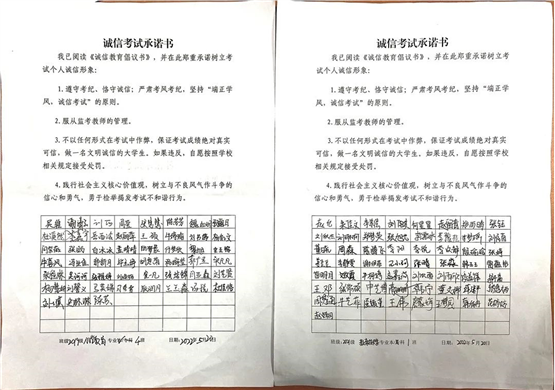 班会结束后,全体学生在《诚信考试承诺书》上签名,许下遵规守纪、诚信应考的庄重承诺。