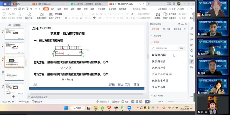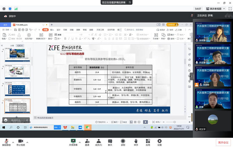 11月11日集体磨课期间,汽车教研室专业带头人何文平教授全程参与评定和指导,何教授结合评估要求从授课方法、教学思路、案例引入、情景结合等多角度评价和指导,所有参赛教师均表示受益匪浅。