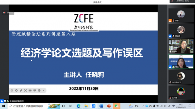 管理学院开展管理纵横论坛第八期第二讲——《经济学论文选题以及论文写作误区》