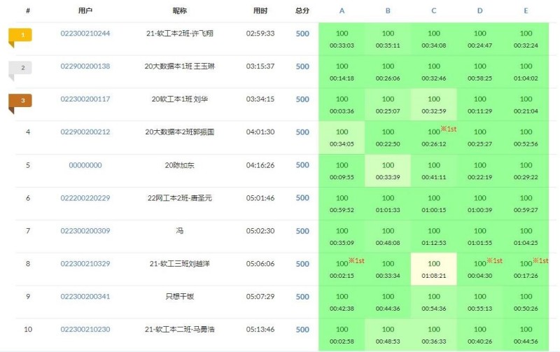 参赛成员在信息工程学院自建的OJ算法训练平台上进行作答,经过3个小时的激烈角逐,21软工本2班许飞翔,20软工本2班林彤、马森荣、张国富同学获得大赛一等奖;20大数据本1班王玉琳、武继文、武天义、郑皓文,20软工本1班刘华,20大数据本2班郭振国同学获得大赛二等奖;20软工本3班陈加东、李龙威等同学获得大赛三等奖。