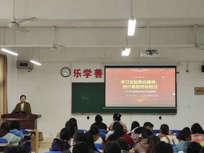 学生第二党支部组织委员徐亚楠以《学习全国两会精神,践行青春使命担当》为主题进行授课,带领学员们学习全国两会精神,坚定理想信念,自觉践行青春使命,展现新时代大学生风采。