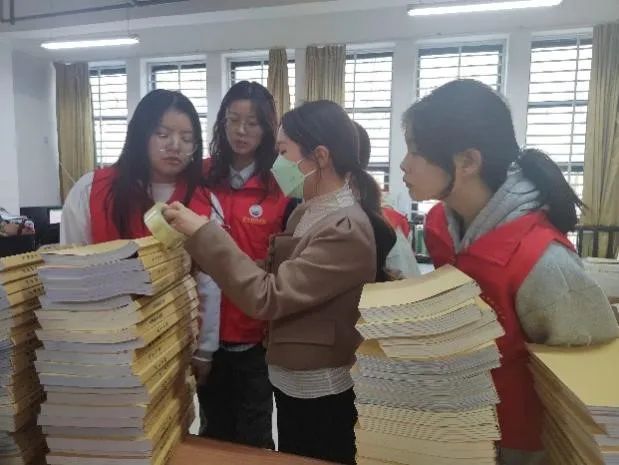 志愿者们认真聆听图书分类、排架、检索等相关知识,并在图书馆负责人的指导下合理分工,有条不紊地整理书籍材料、核对书籍数目、粘贴书籍信息磁条,将书籍摆放到合理位置,方便同学们查找与借阅。