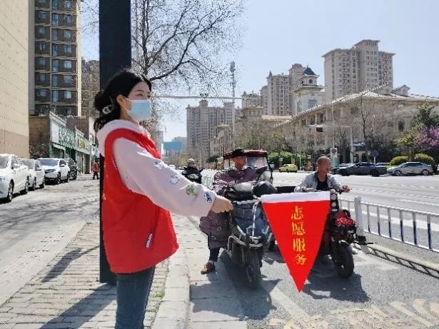 志愿者们维护道路交通安全