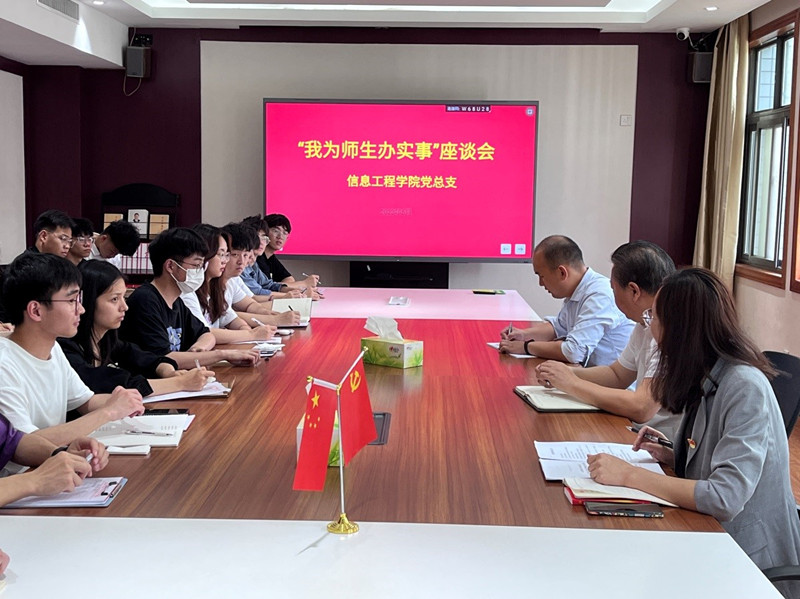 自开展学习贯彻习近平新时代中国特色社会主义思想主题教育以来,信息工程学院党总支紧抓“实”字,突出“深”字,切实落实立德树人根本任务,把开展主题教育同总结经验、对照现实、推动工作结合起来,扎实开展“我为师生办实事”活动。5月30日,信息工程学院党总支在德正楼508会议室召开“我为师生办实事”活动座谈会,学院院长周清雷、党总支副书记王修哲及学生代表参加座谈会。会议由党总支书记廖兰芳主持。