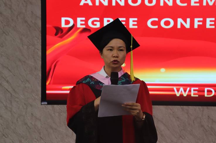 外国语学院副院长黄雪娟宣读2023届本科毕业生学生学位授予文件