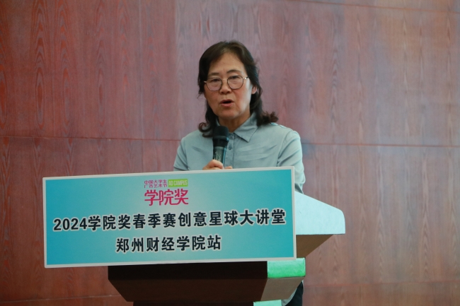 文化与传媒学院院长夏丽华致辞,她简要介绍了文化与传媒学院发展历程及基本状况,表示学院成立以来立足地方经济社会发展,聚焦“学、研、训、赛、创、用”,不断强化实践教学环节,探索实施“政府+行业+企业+教师+学生”五力融合的人才培养模式,协同培养“懂政策、能策划、会采写、擅设计、有创意、精制作、通运营、艺传播”的高素质应用型人才。她强调,中国大学生广告艺术节学院奖是学院以赛促教、促学、促练培养人才的重要平台,期望通过此次活动深化产教融合内涵,完善实践教学体系,加强课程与教学资源建设,助推大学生展现才华,为就业创业打下坚实基础。