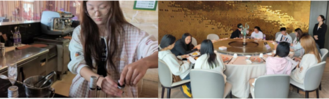 接下来,在老师指导以及中油花园各部门经理的现场演示下,学生们进行了客房清扫、查房、对客服务及商务楼层服务等程序和要求的学习;对中餐、西餐、宴会、酒吧等的接待服务程序进行了现场演练,并学习餐饮成本控制和菜品推销技巧。通过实训项目的开展,深度强化了学生的实操水平,促进学生综合素养和学习兴趣的提升。