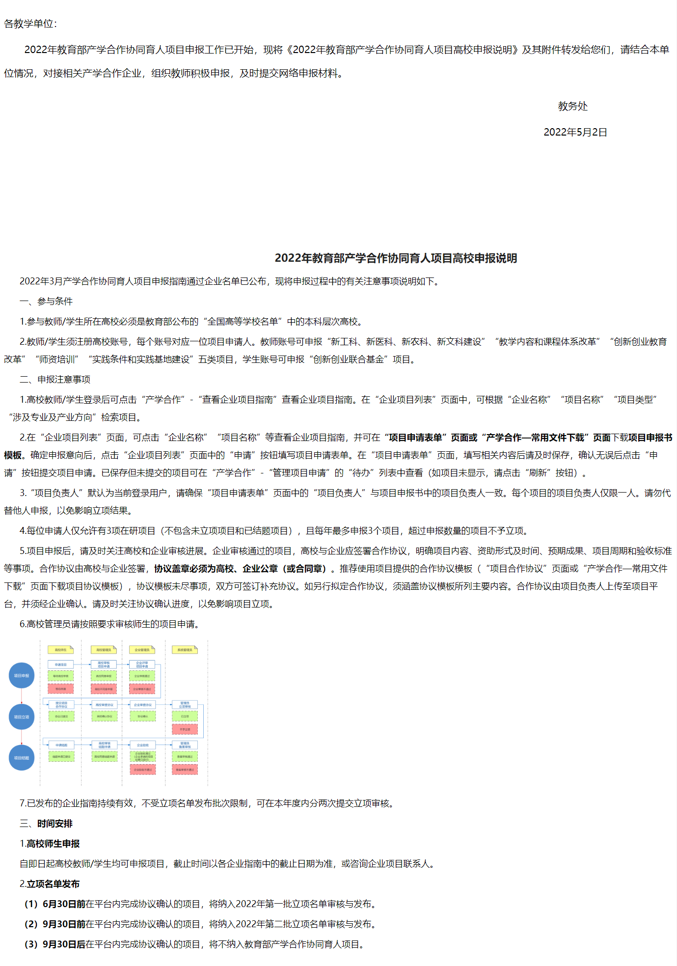关于组织教师申报​2022年教育部产学合作协同育人项目的通知