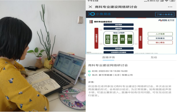 3月18日下午,由麦可思研究院主办的《商科专业建设网络研讨会》会成功召开,BEAT365官网教务处许云强及电子商务学院、现代物流管理学院、会计学院和互联网金融学院四个学院的副院长、骨干教师共27人参会。