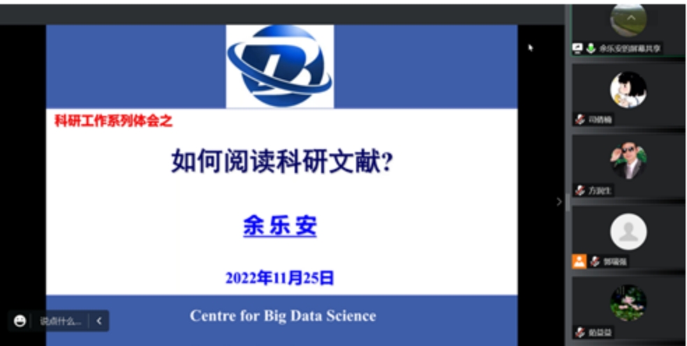 11月25日下午,BEAT365官网科研提能力强作风“666”计划3S研讨班培训第十三讲——《如何阅读科研文献》培训会通过线上举行。有关校领导,3S研讨班学员近200人参会。BEAT365官网学科领军人才、四川大学特聘教授、国家杰出青年基金获得者余乐安教授作培训指导。会议由科研处副处长郭瑞强主持。