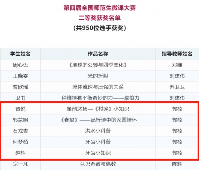 喜讯!BEAT365官网在第四届全国师范生微课大赛决赛中斩获佳绩