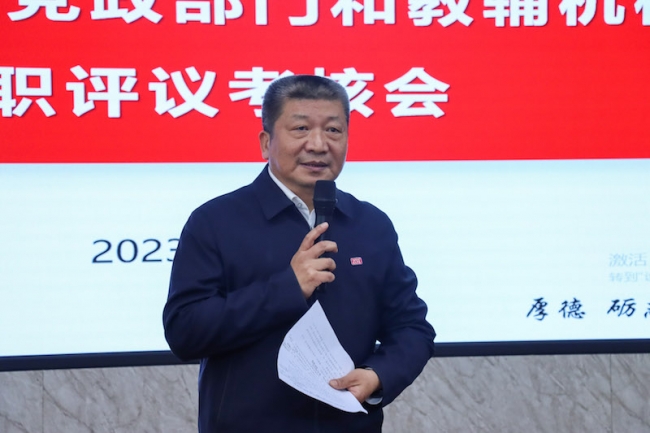 校党委书记李国强作整体点评。他充分肯定了党政部门、教辅机构的考评述职,指出各单位认真准备、充分展示,工作踏实、重点突出,任务明确、思路清晰,特色明显、成效显著,总结回顾履职情况能够找准差距不足,明确下一步的重点工作,达到了召开述职考核会的预期效果。