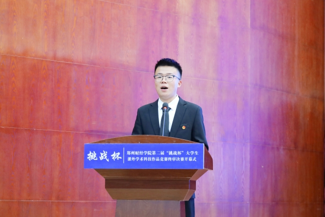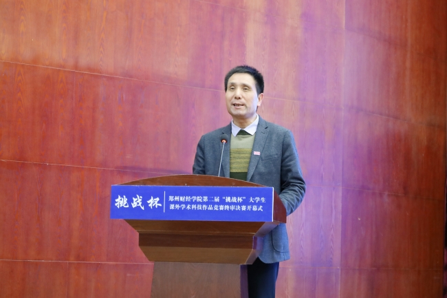 副校长陈静致开幕词,她首先对参加终审决赛答辩的团队致以衷心祝贺,表示此次大赛将全校学术科技创新的大学生菁英汇聚一堂,碰撞智慧、交流成果、比拼才能,充分展现了郑财学子的精神风貌与科技创新风采。并对本次大赛提出三点希望,一是坚持育人导向,牢记初心使命;二是坚持创新学识,促进成果转化;三是坚持以赛促学,深入总结经验。