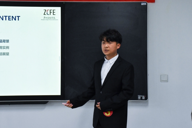信息工程学院20级网络工程2班李佳康同学作为参赛学生代表发言,他号召所有参赛选手珍惜挑战杯提供的宝贵机会,积极合作、力求创新。