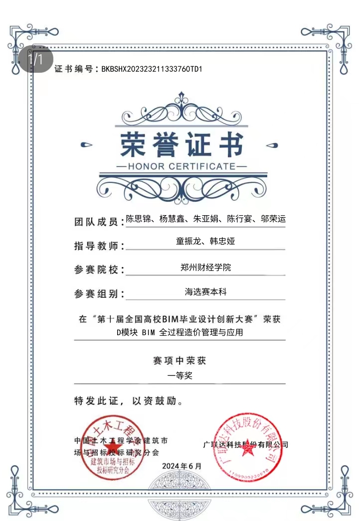 瀚海团队在一次次比赛中体会到BIM技术的魅力和其对当代建筑行业发展的重要作用,坚定他们深耕BIM技术的想法。在一次次与实际工程相关的讲座中,团队成员对实际项目中的BIM技术应用产生极大好奇心,2023年暑期,他们参加了由土木工程学院、郑州市建筑资产管理信息化工程研究中心、青矩工程顾问有限公司、郑州比程建筑科技有限公司共同组织的校企协同育人项目,在实际项目中积累专业知识,磨练技术水平。