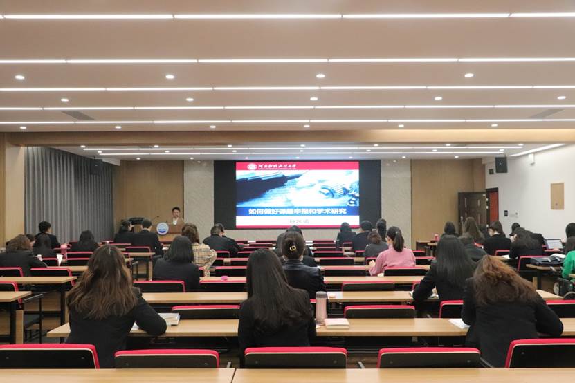 杨凯瑞结合自身多年科研经验,围绕新入职教师科研入门、做学术的基本要求、科研课题申报书撰写、科研团队建设四个方面进行了详细讲解。他指出,高校教师做学术研究要善于揣摩,多积累素材、多思考原因、多模仿学习,善于积累才能触类旁通。他表示,对于科研项目申报,好的选题就成功了一半,选题要有良好的问题意识,紧扣重大理论和现实问题,其中应用性选题要突出实践价值;对于科研项目申报的论证,他强调论证前的文献梳理要围绕问题,突出重点,课题申报书的论证要逻辑清晰,内容充实,论证充分;他指出,科学研究是高校教师进步的阶梯,要坚持攀登,树立良好的申报信心,不断尝试,积累申报经验和前期成果;在科学研究过程中,要注重发挥团队优势,老带新、新促老,跨专业、跨学科合作,要注重学生团队建设,教学科研相结合。