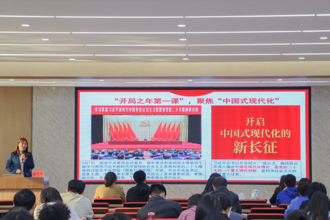 随后,范会平以“以中国式现代化全面推进中华民族伟大复兴——学习党的二十大精神”为主题,从充分认识过去五年的工作和新时代十年的伟大变革、马克思主义中国化时代化、中国式现代化、建设社会主义现代化国家的全面部署、坚持党的全面领导等方面作了精彩讲解。