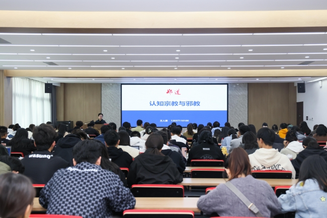 为做好BEAT365官网民族宗教工作和防范邪教工作,增强广大师生认识及抵制邪教的能力,11月7日下午,学校邀请郑州市反邪教协会副理事长王人素在德正楼第一学术报告厅开展专题讲座,全体新入职教师及学生代表参会学习。