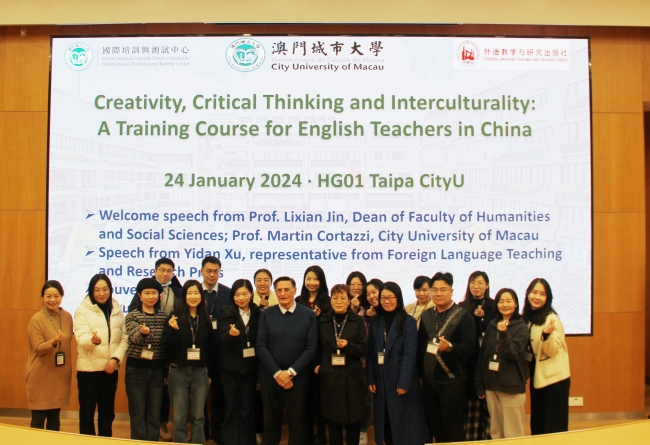本期研修班由澳门城市大学与外语教学与研究出版社联合举办,由澳门城市大学的金立贤教授、Martin Cortazzi教授等外语界大咖担任主讲专家,来自全国各高校的骨干英语教师代表共18人参加。为期一周的研修活动采用全英文授课和交流,聚焦高校英语教师如何围绕创造力、思辨力和跨文化能力三大核心话题开展有效英语教学。研修班培训内容丰富多彩,参训教师通过参加主题讲座、实践工作坊、跨文化体验和成果展示,在学习前沿教学理念、提升教学实践能力的同时,还体验了多元文化背景下的特色语言教育,提升自身综合素养,促进专业化发展。