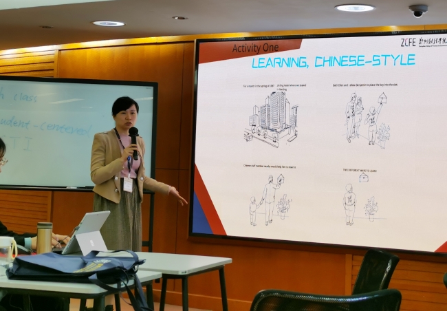 由金立贤教授、Martin Cortazzi教授合作主讲的“Intergrated Teaching of CCTI”和“Discourse Analysis”主题讲座,通过历史引出了粤语、普通话、英语、葡萄牙语等多语种模式下,澳门特别行政区的语言文化特色,以及其在政治、经济、文化领域的跨文化沟通体现。同时还结合亲身经历,形象地介绍了多语体系和多元文化带来的独特体验。通过示范教学、分组讨论、教学设计展示和教学评价等活动,综合讲解语言方式教学法、文化方式比较法、能力培养法、困境问题解决法、实践体验法和社会实践运用法,在CCTI英语教学中的具体应用。他们强调,言语是对语言系统资源的使用,其价值观体现的是表达者的价值观,言语产品可以提供中性信息,但言语产品还可能携带个人或组织代言人的偏见乃至敌意。在外语教育过程中,师生接触外语,不是接触任何语种的抽象语言系统,而是接触具体的外语文本,师生不仅需要具备对外语文本的批判性文化意识,还需要综合运用思辨力、跨文化能力和语用分析能力解读文本,做好中国国际传播。