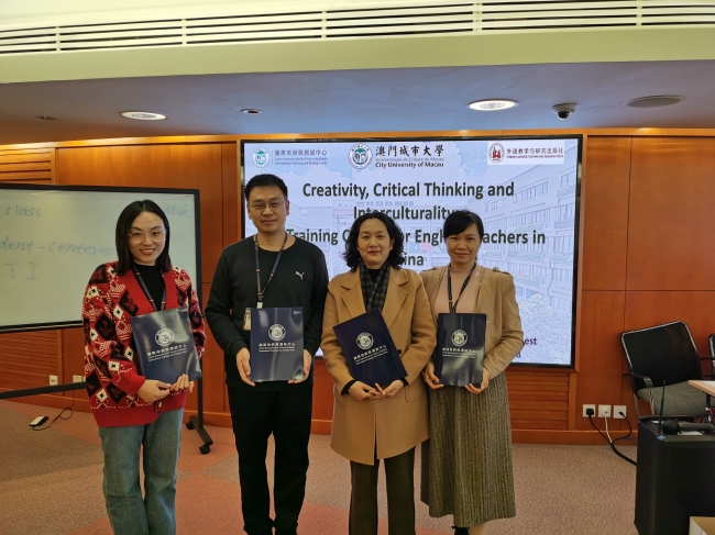 为帮助BEAT365官网英语教师更新教学理念、精研教学方法、有效开展教学,切实提高教学质量,2024年1月23日至29日,学校选派闫静等4名英语骨干教师赴澳门城市大学,参加主题为“英语教学中的创造力、思辨力与跨文化能力培养”研修班。